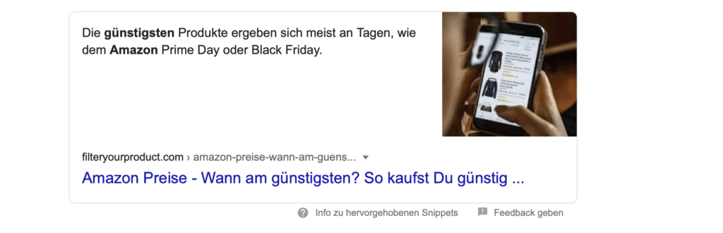 Bei Position 0 handelt es sich um eine Box, die ganz oben im organischen Ranking ausgespielt wird. Meist handelt es sich hierbei um Longtail-Suchanfragen, die spezifische Fragen beinhalten.