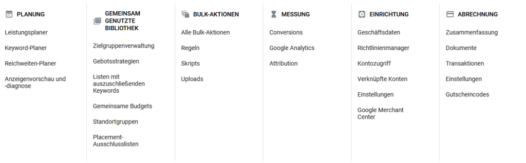 In deinem 3.3 Listen mit auszuschließenden Keywords Konto sind eine Reihe an Tools und Funktionen versteckt, die Dir dabei helfen sollen, Google Ads effizient zu nutzen. Viele dieser Einstellungen auf Kontoebene sollten durchgeführt werden, bevor Du deine erste Kampagne erstellst.