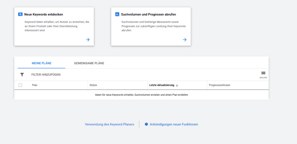 Mithilfe des Keyword-Planers kannst Du nach den Keywords recherchieren, die für deine Google Ads Kampagne infrage kommen.