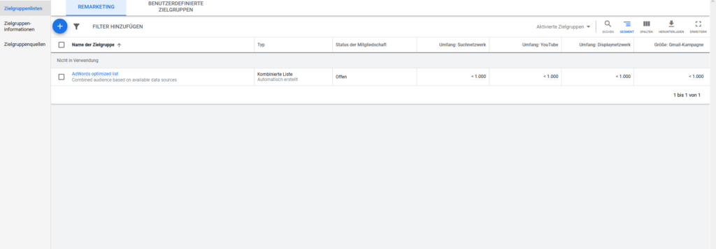 Zielgruppeninformation: Diese Funktion deines Google ADS Kontos soll dir dabei helfen, die optimale Zielgruppe zu finden. Sie macht es dir einfacher, die User auszumachen, die für eine Re-Marketing-Kampagne infrage kommen. Das funktioniert aber nur, wenn das Google Ads Conversion Tracking auf deiner Webseite eingerichtet wurde.