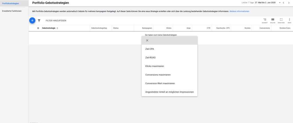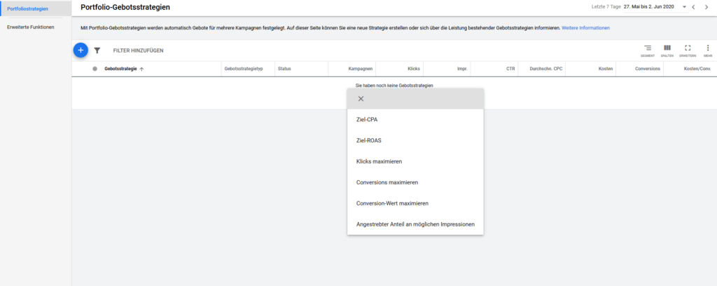 Du kannst deine Gebotsstrategien entweder beim Erstellen deiner Kampagne oder direkt über Portfolio- Gebotsstrategien einrichten.