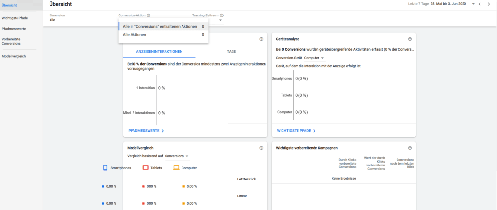 Unter Attribution kannst Du die Attributionberichte aufrufen.