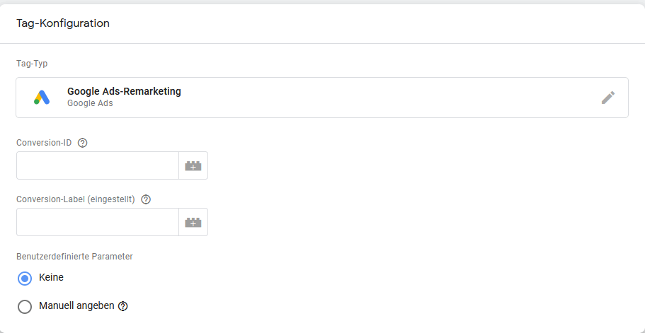 7. Schreibe in die vorgegebenen Felder die Conversion-ID von Google Ads. Wenn du willst, kannst du auch ein Conversion-Label angeben. Diese Angabe ist aber optional.