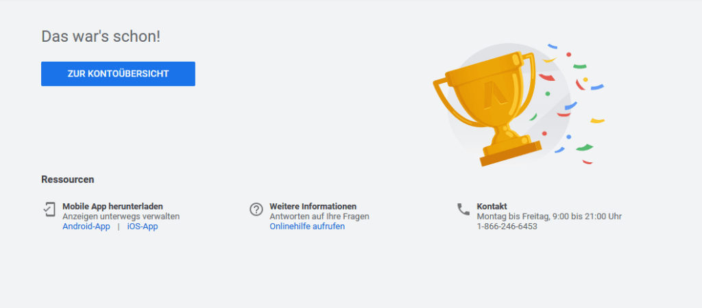 Tipp: Wird ein Google Ads Konto aus einem Verwaltungskonto entfernt, müssen sofort die Zahlungsinformationen innerhalb des Kontos hinzugefügt werden, damit neue Kampagnen erstellt werden können.