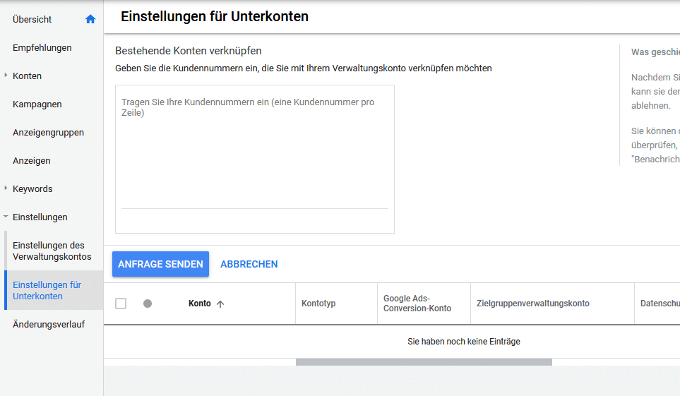 Bei einem 10.2 So lassen sich die Abrechnungsinformationen für ein bestehendes Konto ändern Verwaltungskonto handelt es sich um einen Zugang, mit dem mehrere Google Ads Konten über ein zentrales Backend verwaltet werden können.