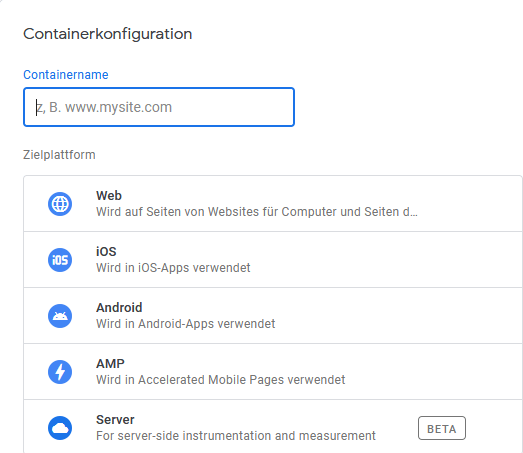 Tipp: Achte darauf, dass Du in den Namen des Containers den Content-Typ bzw. die Zielplattform einbaust.