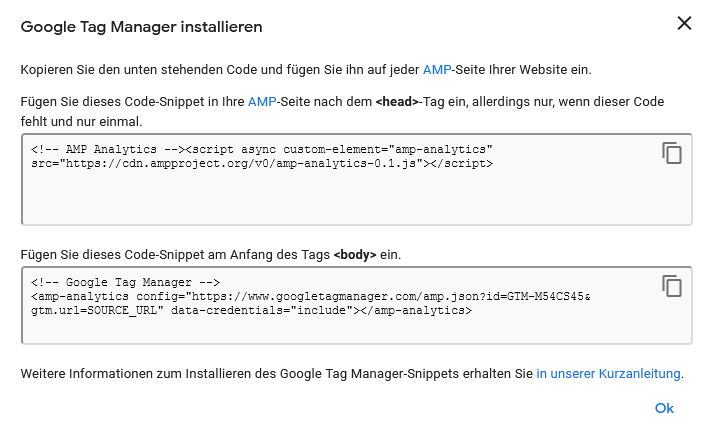 Achtung: Sobald alle Tags ausgelöst werden, sollte bedacht werden, dass eine Implementierung der Codes per Container nicht funktioniert. Besser in so einem Fall ist die benutzerdefinierte Containerimplementierung.